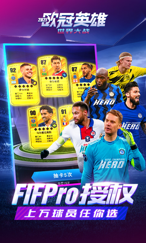 FIFPro官方正版授权,全新H5足球游戏力作。集球星收藏,球员养成,布阵对战,为一体的足球卡牌游戏。